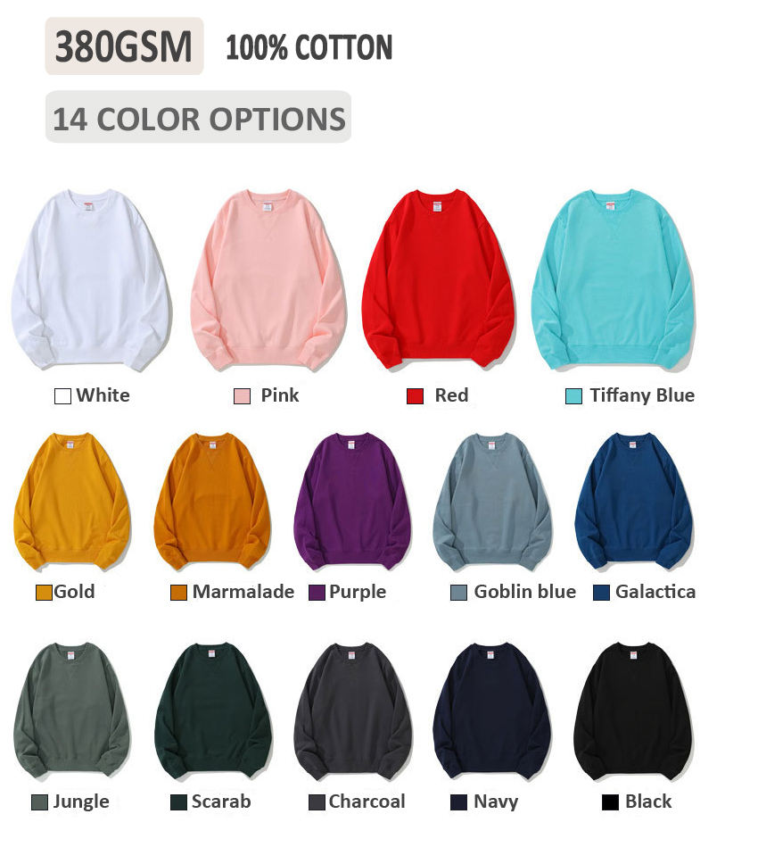 Unisex Long Sleeve Solid Color Men Crew Neck Sweatshirt Men’s Hoodies & Sweatshirts Custom Printing Embroidery Pattern logo